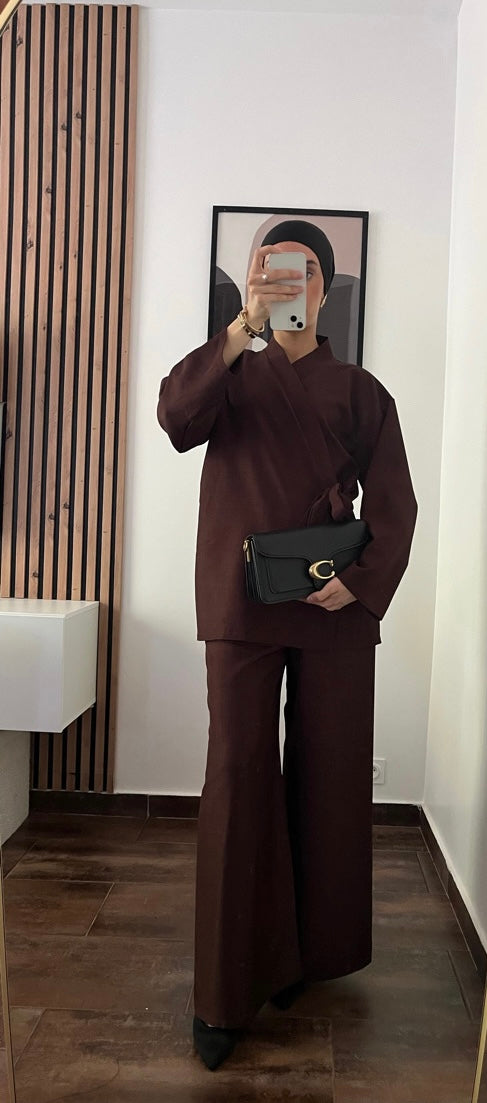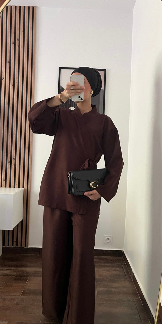 Élégant, doux et parfaitement dans la tendance. L'ensemble CARMEN marron apporte une touche chaleureuse et stylée à votre dressing.